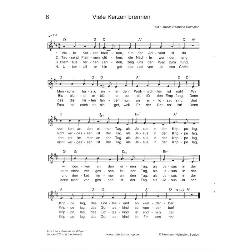 | Viele Kerzen brennen | Liedtext, Noten (externes JPG) | Melodie und Gitarrenakkorde |