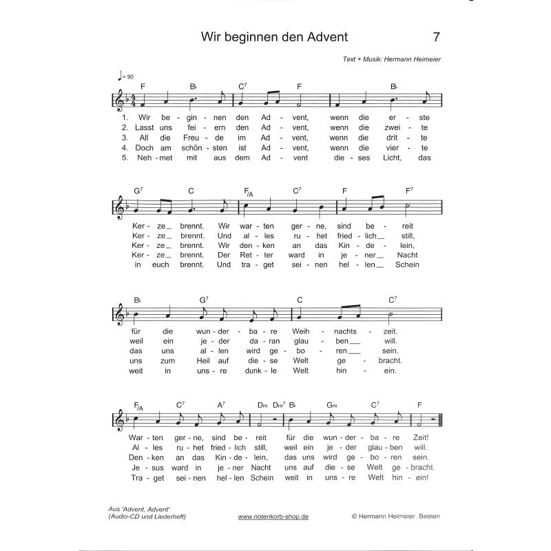 | Wir beginnen den Advent | Liedtext, Noten (externes JPG) | Melodie und Gitarrenakkorde |